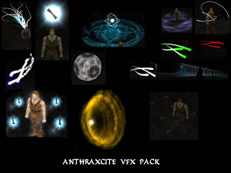 A small whole of visual effects to embed as spell or as simple effect. On one hand, there are the effects which you can use as they are, �DURATION�, �IMP� or �FNF� and on the other hand a series of effects of the projectile type to use by modifying the file spells.2da.
