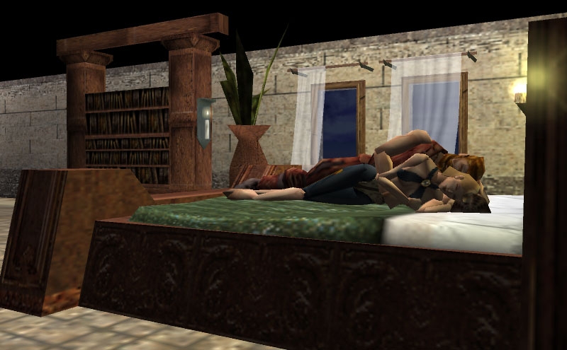 I've change the walkmesh on the beds from "Non Walk" to "Walkable." In gameplay terms, this mean creatures can now stand on the bed. With a little scripting work, you can make creatures play the DEAD_FRONT or DEAD_BACK animations to make it look like they're sleeping on the bed. :) _________________________ [dla][united colors][player's handbook][other submissions]