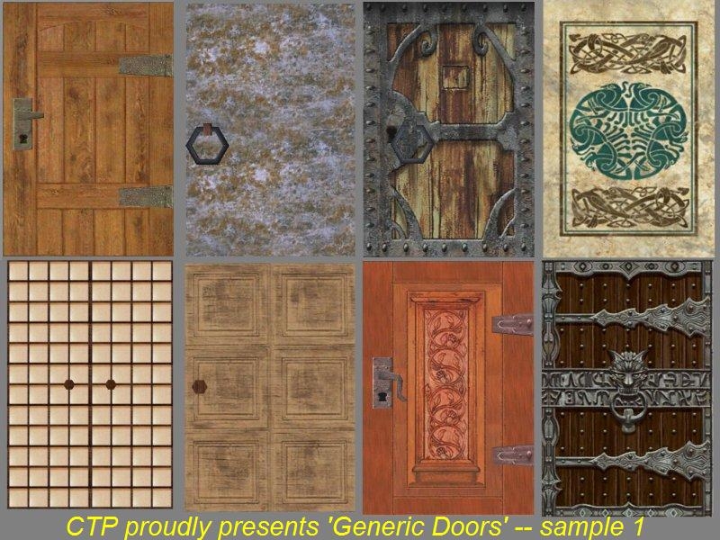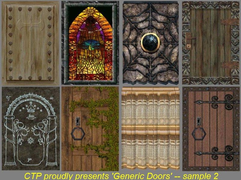 CTP_Generic_Doors.rar All you need to grab, all documentation and screenshots included. Enjoy! (REPAIRED FILES FOR CRC ERRORS, NO CONTENT CHANGES AT ALL OTHERWISE) ** Patched to be compatible with Bioware's 1.69 final patch **