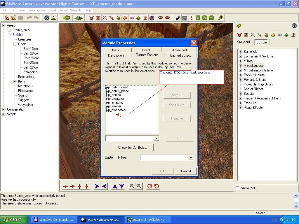 JXP_RTC - Module whith the haks added, horses, and some placeables scripts like tipis, RTC 1.14 added.