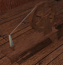 Also, I finished a simple spinning wheel that I will be loading into this hak as well, along with a placeable spindle (simple, laying on its side, no walkmesh, no animations).