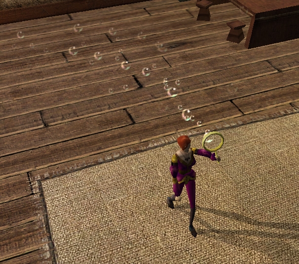 Remember the fun you had as a little kid getting bottles of bubble soap with those cheap plastic wands and blowing those shimmering little bubbles? (No? Geez, I feel old now...) Now your character can do the same with this emitter-based bubble soap wand!