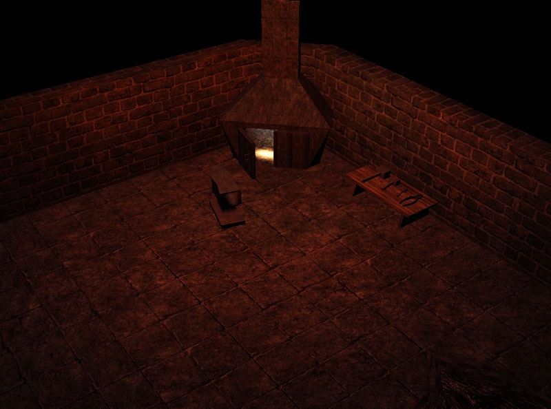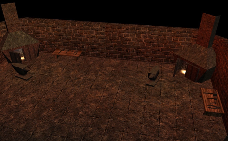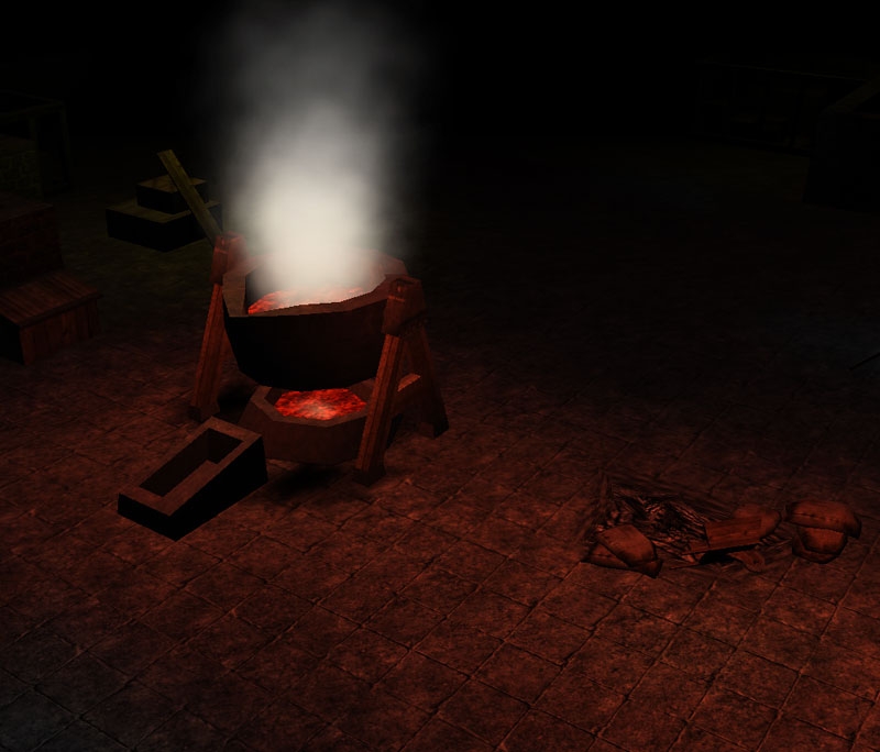 I like this little tileset. The appropriately sooty textures are particularly good and I like the quench and cinder VFX on the forge, too. The forge could do with a set of bellows, though. More stuff in general would obviously be great.