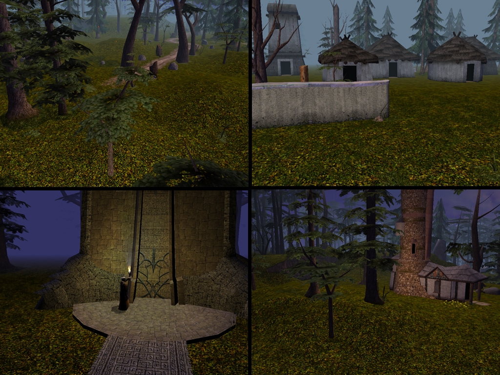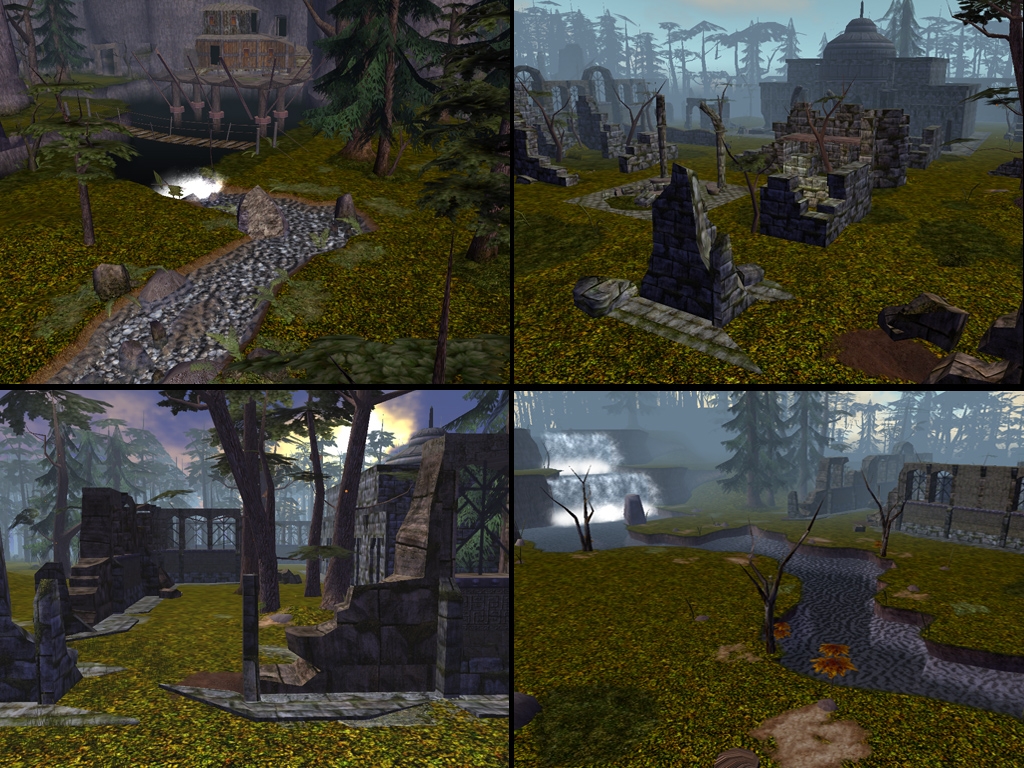 The ruins are a mixture of re-textured Bioware models (some are possibly by little Baron & Pogo Mudder)The ruin wall crossers that paint up against raised ground are re-textured imports from Kert Wettian's Full Forest Rural tileset.