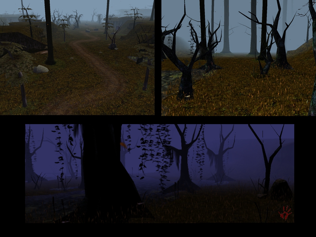 The imaginatively named BTH Swamp 1 used TB Swamp as the base tileset. I have added a number of retextured forest models along with Rural trees and roads. This tileset also makes a good alternative to Bioware Forest if you are looking for something a little dark and dank.