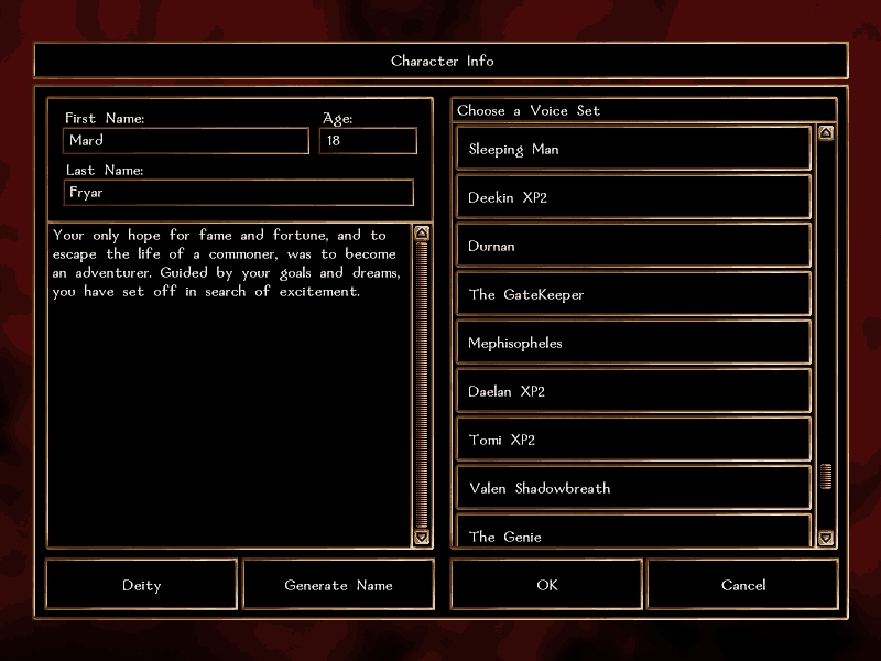 Just thought I'd point out that other players will NOT be able to hear any voices beyond the normal 2da entries, unless they also have this in override. If you want everyone to hear you, use a voiceset unlocker that has a seperate file for each sex.