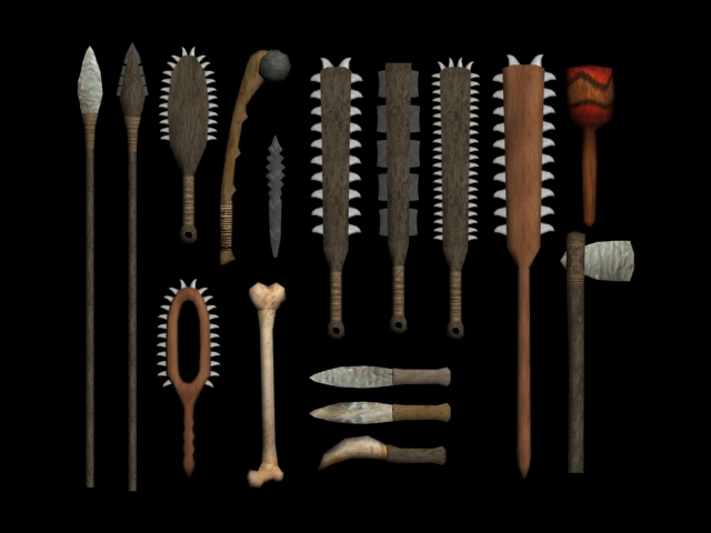 Some alternate setting weapons is a great idea, post some images if you can and I'll see what I can do, that goes for anyone else...it doesnt have to be real life, even if its something you just made up let me know. Please keep it sort of primitive looking though, I dont want things like dragonbone longswords with a fancy carved blade thats got 20k of polys in it, with a handle that could put most tilesets to shame on the faces scale :P