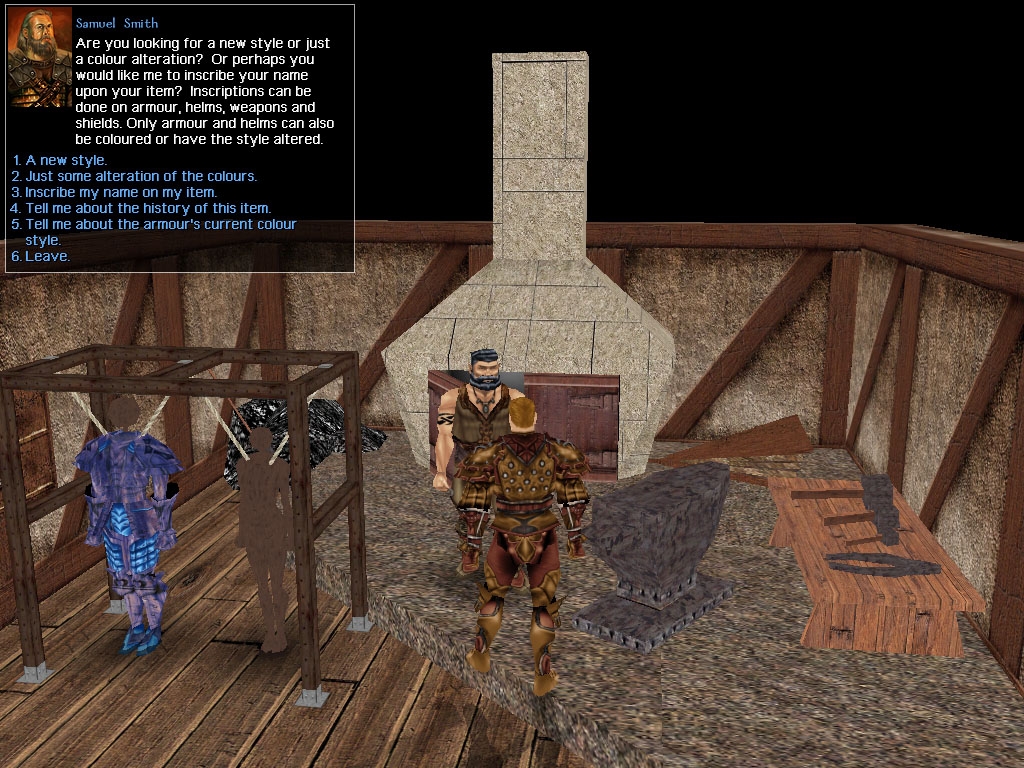 Heed's armour designer is a custom content/scripting package that allows players to make changes to armour, helms, weapons and shields through interaction with an npc shopkeeper.