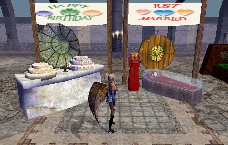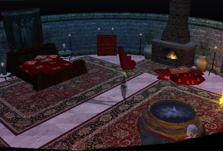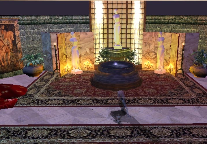 Several of Ath's Minerals, Dark Fog ( remade from regular white fog by Aria_1221, Tents, Chandigars Chandelier and bear statue, Pasili's Doors, Lisas Holdables, Holdable flowers by Brother Roth, Skull Throne, book and portal by Spoon Merlin,New Candelabras,candles, tapestrymodels, rugs, mosaic tiles, red corner,long and white long couch, matching side chairs, red/black and white coffee and side tables all by Dark Faction. All tapestry texures, some rug textures given by Aria_1221/Eviel Darkmoon. Tree Mosaic tile by Aria_1221. Marble floor tile set and Dais, designed by Aria_1221 ( modeler for dais unknown); Wooden Altar retexured by Aria-1221.