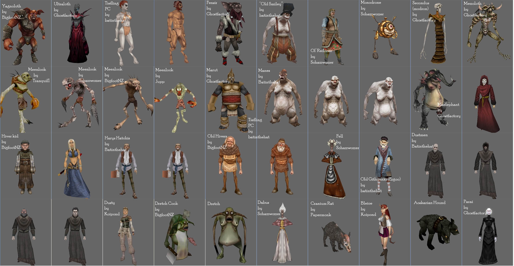 Hmmm just noticed something in the screenshot thats incorrect. The Drethch Cook was NOT made or textured by me.... just thought Id mention that, since I dont like being given credit for work I didnt do, bad karma :P