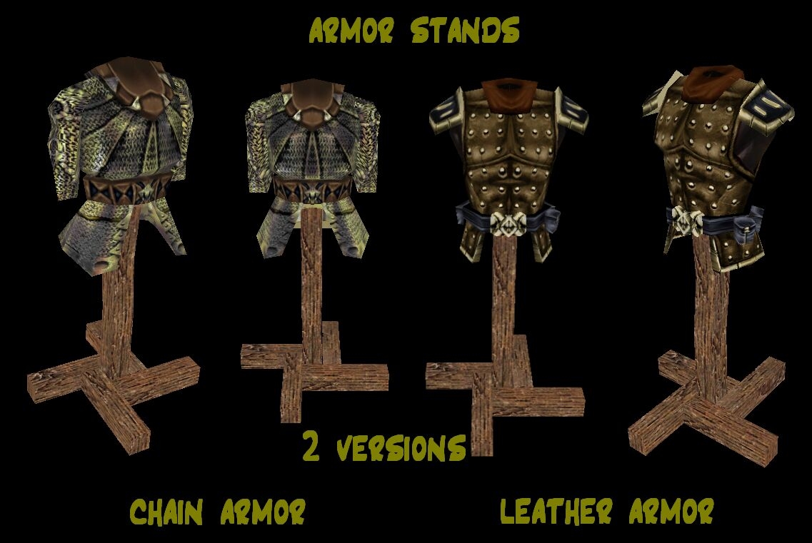 2 placeable armor stands. one displaying leather armor and the other displaying chain armor.