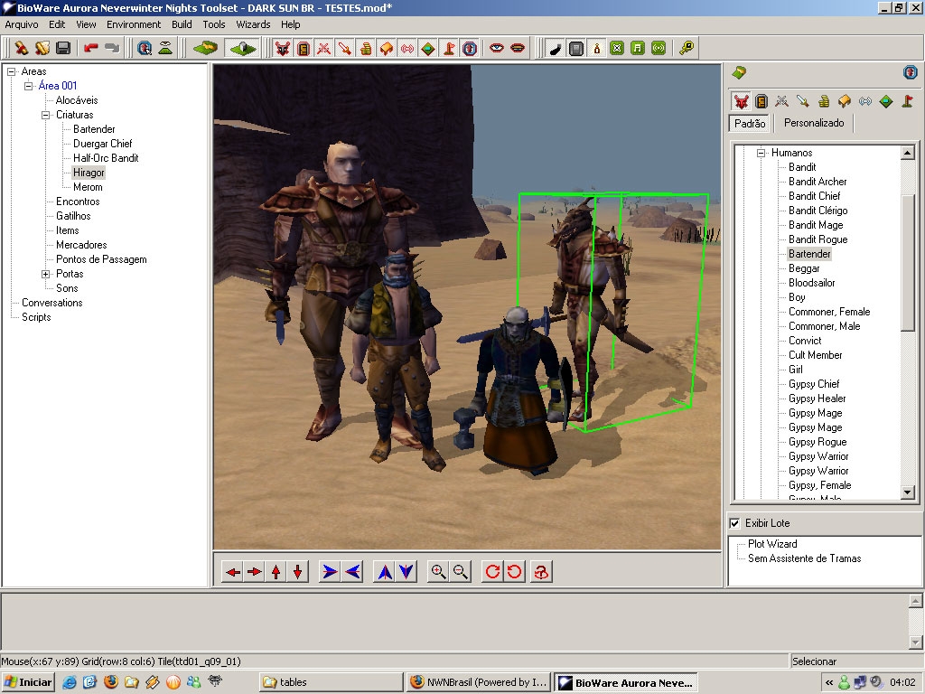My first release on vault of the Dark Sun BR module wich i�m working on it. Now it�s all about the new Races, Classes and Prestige Classes. Download it and test it. It�s in portuguese.