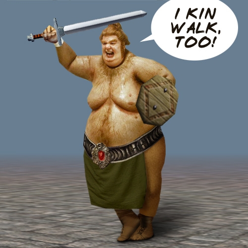This is THE most outrageous thing I have seen in NWN, and I have been around since the very beggining. How anyone can believe this hilarious jumpy-jumpy walk is better than the so-called "tracking walk" is completely beyond me. I showed the animations to exactly 24 persons, and each and every last of them thought they looked ridiculous compared to the 1.68 modifications.