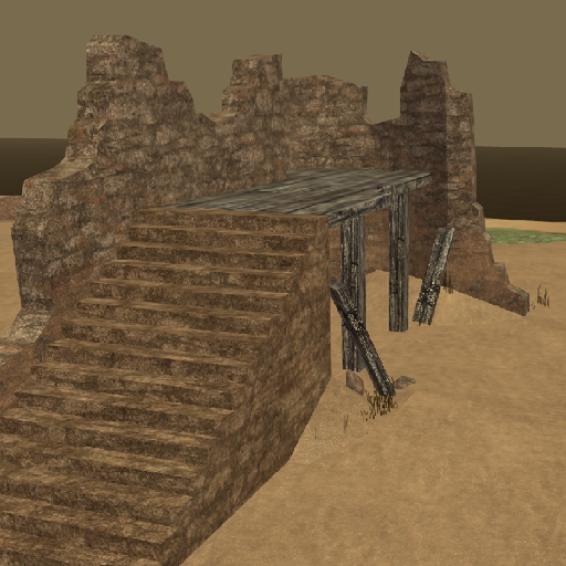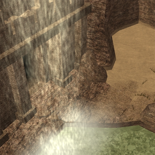 I made some easy photoshop changes to the Bioware texture you used for wood, turned it a little more ocre and gold, but since I am not as talented as you, couldn't make it look grainy and sandy, as you did with cliffs, rocks, walls, etc. Perhaps you may agree on this, and give such textures the same grainy and sandy look you did to the rest.