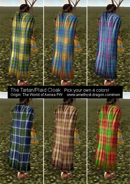 Is your clansman looking for a new cloak? Does he want something that matches the rest of the clan? Maybe she's looking for something with colors nobody else has. How about hundreds of different possible color combinations?