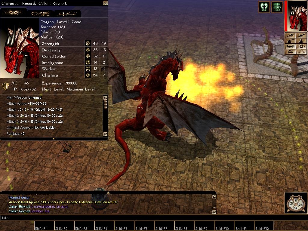 - Version 2.0 ONLY: There are now two Dragon Shape feats with different prerequisites: Shifter Dragon Shape (Epic Shifter, Construct Shape) and (Druid) Dragon Shape (Epic Druid, 30 WIS, Wildshape 6x/day).