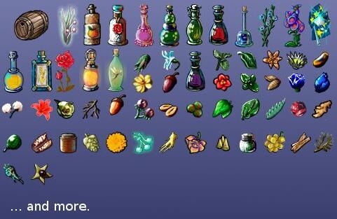 Originally created for the PW Avlis these are 98 custom inventory icons. Except 28 of them they were all done from scratch. Most of them are herbal ingredients and bottles. Have fun.