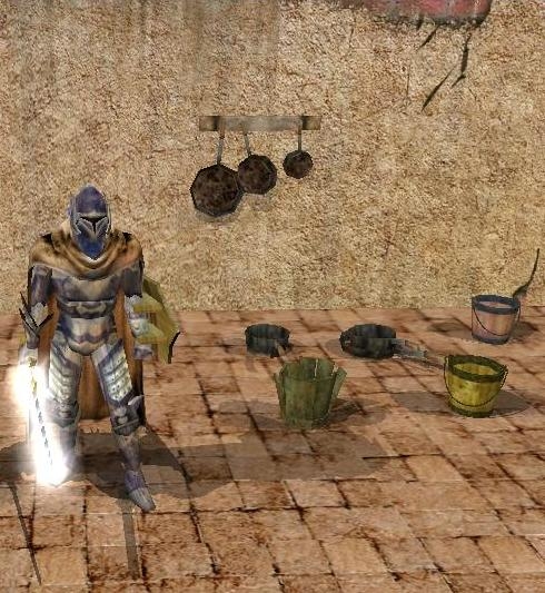 32 kitchen/cooking/food related placeables that I converted from NWN2 for NWN use: 4 bottles, bread basket, fruit basket, 3 buckets, 2 cooking tables, 3 stoves, 2 ovens, cups, stack of plates, plate, forks, meatslab, pitcher, cleaver, food platter, 3 pots, and a rolling pin.