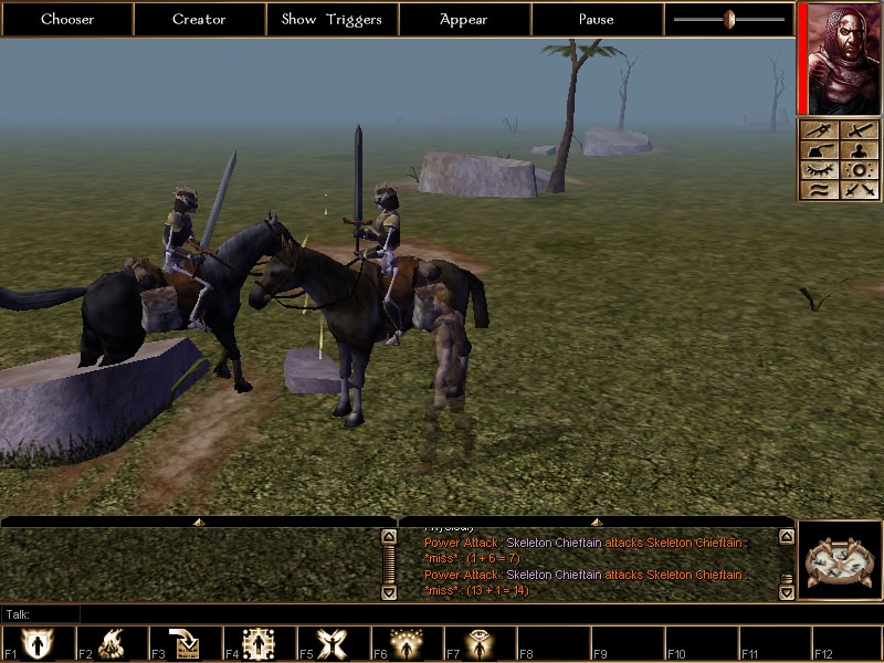 To be really picky, I noticed that the skeleton riders don't have the Mount Actions feat, so while they work perfectly as standard AI monsters, I don't think you can script a scene where the skeletons mount up before attacking. It's a moment's work to fix this in the toolset.