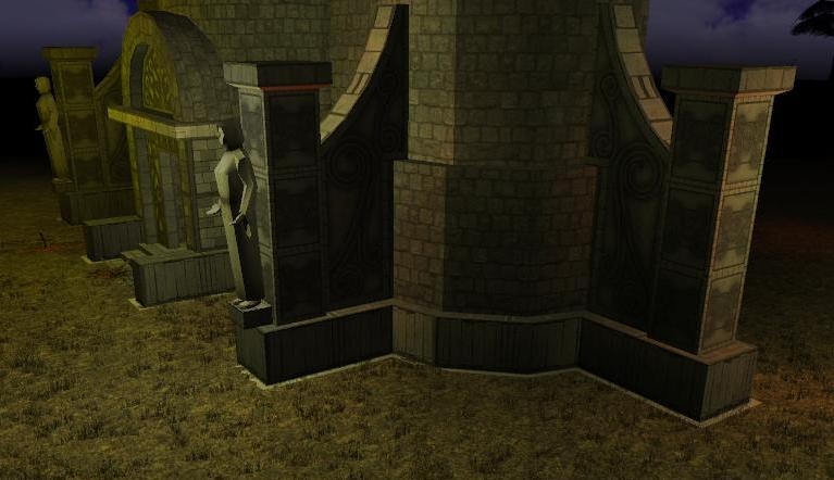 Fantastic work! I've been using your NWN2 rocks everywhere I can, but this is exactly what I need to make a really atmospheric city. Thank you. I just have a question. When I looked at the placeables 2da in this hak I noticed heaps of other entries for doors and other NWN2 buildings. Does this imply that you intend to tranfer a number of other buildings from NWN2. I hope so. Also, the door references puzzled me. The temple placeables don't have doors, and there is no way to walk near enough to use a door even if they had one, so what are the door references there for? Once again, thanks for the amazing work.