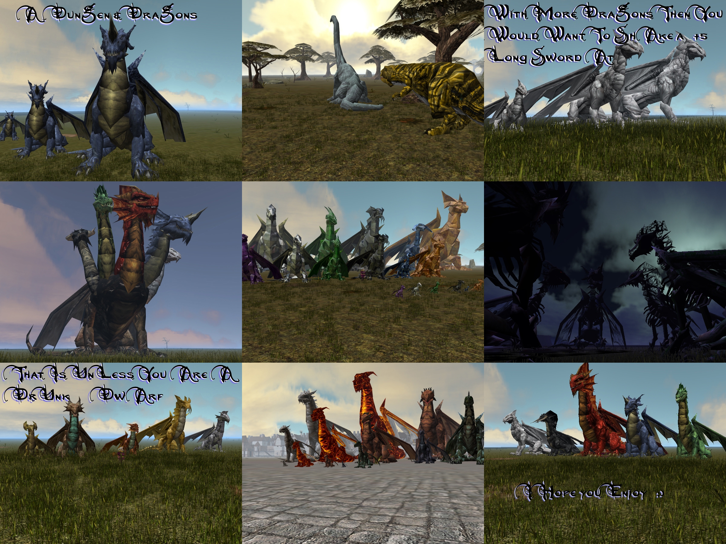 Whats new ---Green Dragons Shadows are fixed along with many model changes, also a few changes to the T-Rex and FellDrakes (like missing textures, Etc.) Fang Dragon and Three of Four Felldrakes now have BluePrints (.mod file, and .Erf), made small changes to the Module.