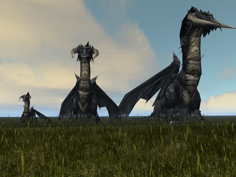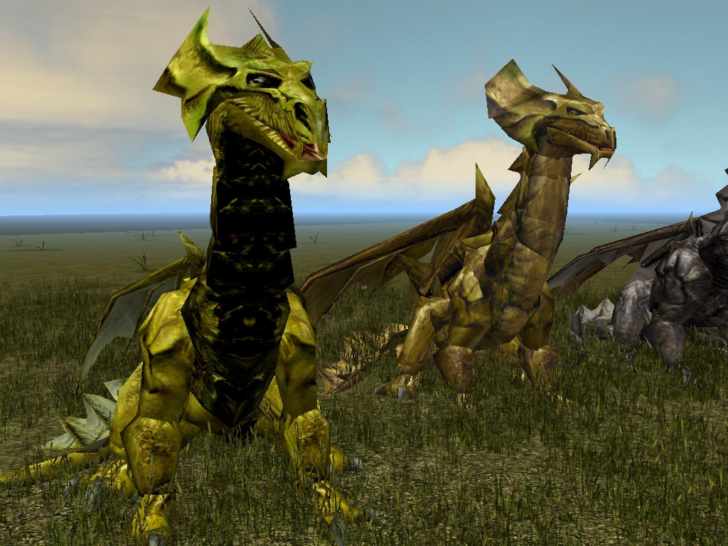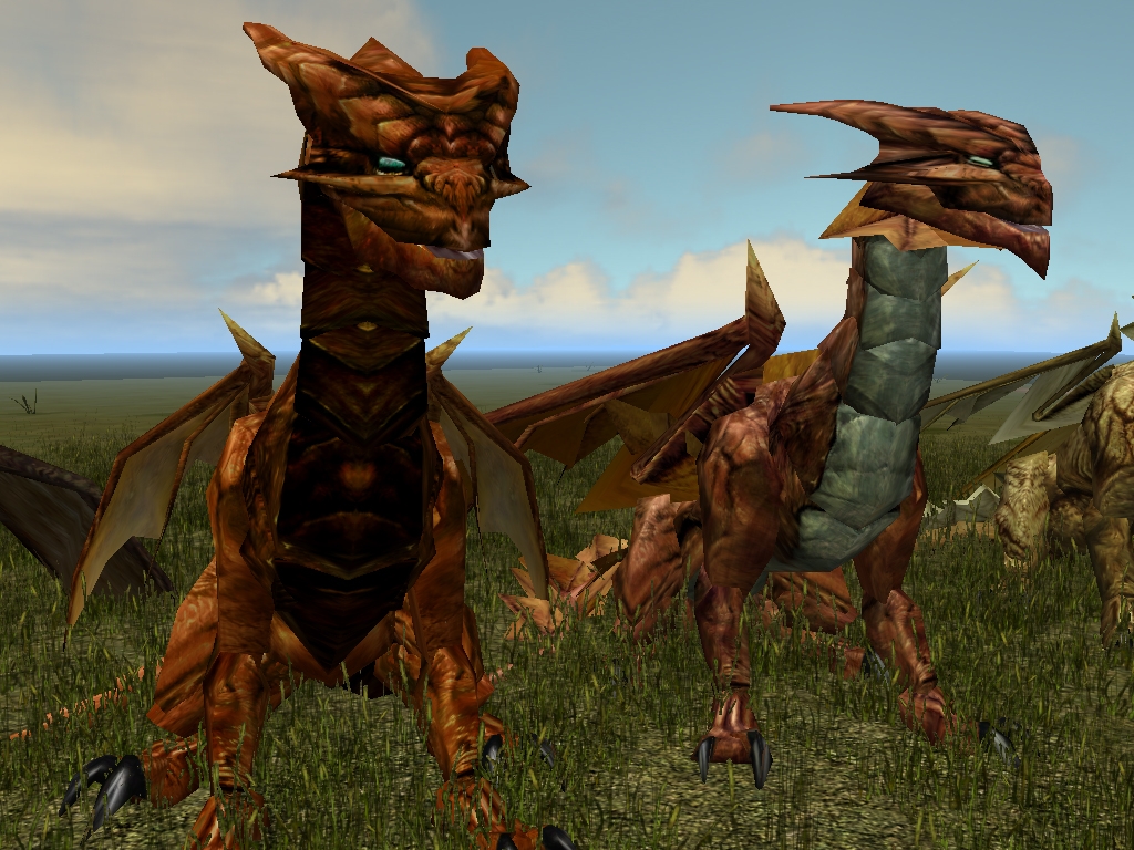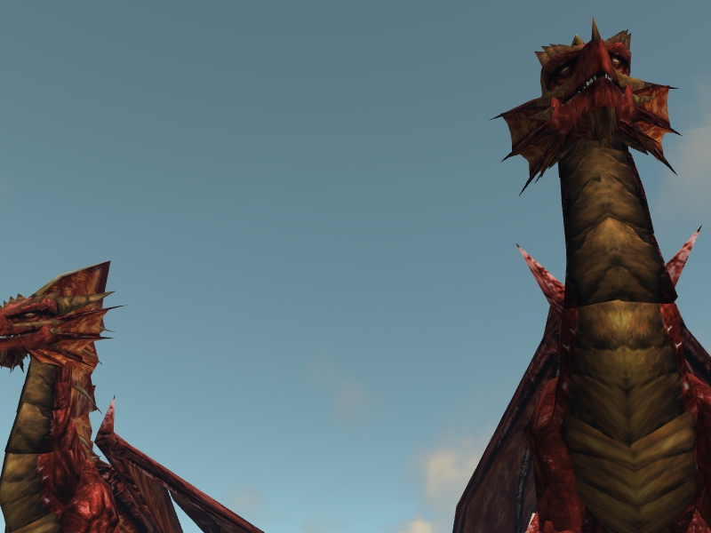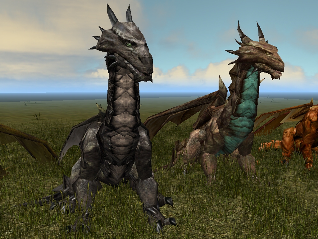 This doesn't mean your dragons are "bad-looking", just that maybe I was rather accostumed to the Neverwinter NIghts models; you know, their build is a little heaftier, the head look bigger and a little more dinosaur-like, there are minimal fins/manes, the textures have high contrast, and so the dragons seem somehow moisty and with a greater sense of body depth, etc.