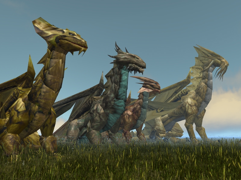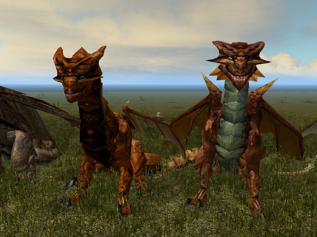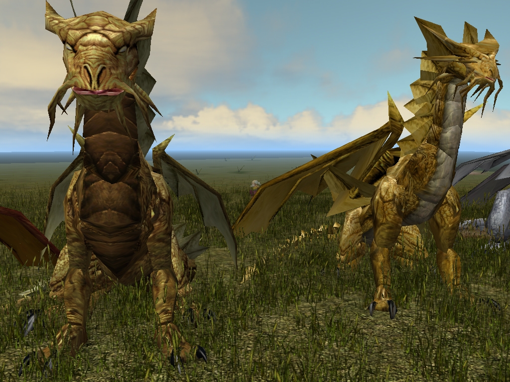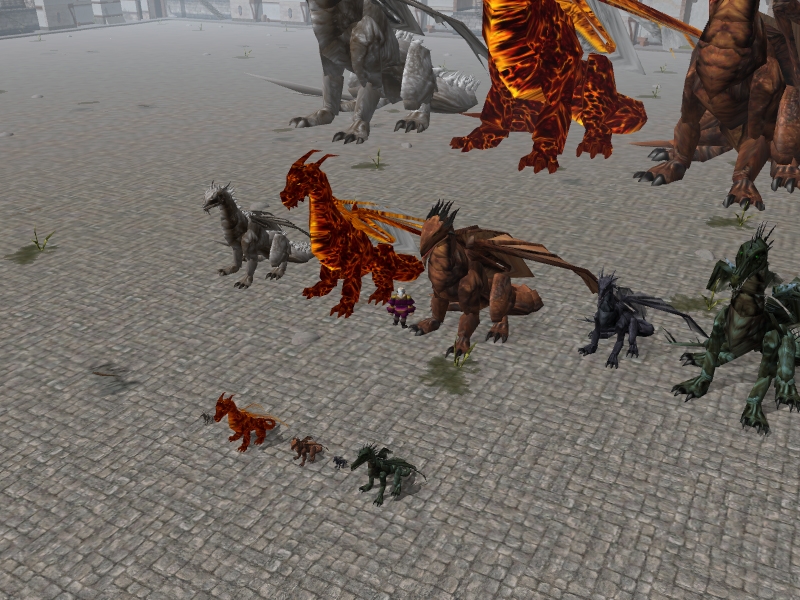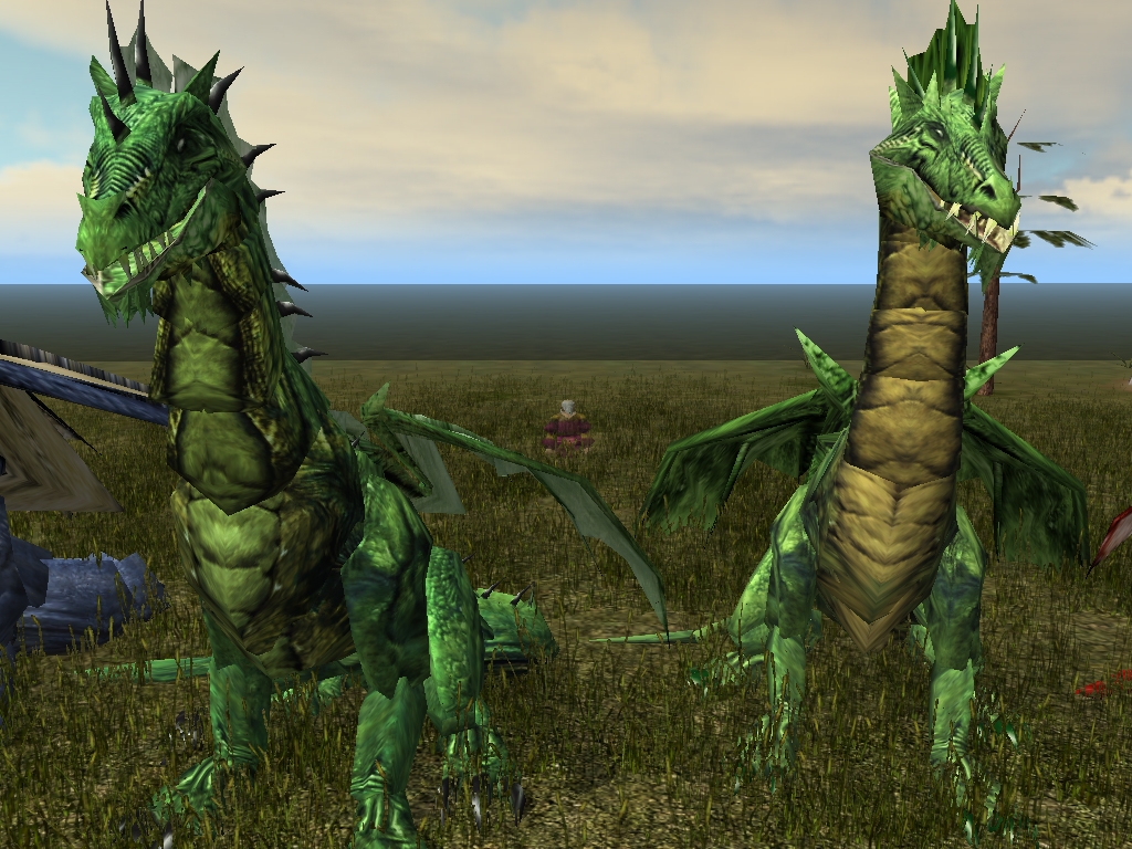 This doesn't mean your dragons are "bad-looking", just that maybe I was rather accostumed to the Neverwinter NIghts models; you know, their build is a little heaftier, the head look bigger and a little more dinosaur-like, there are minimal fins/manes, the textures have high contrast, and so the dragons seem somehow moisty and with a greater sense of body depth, etc.