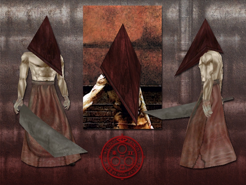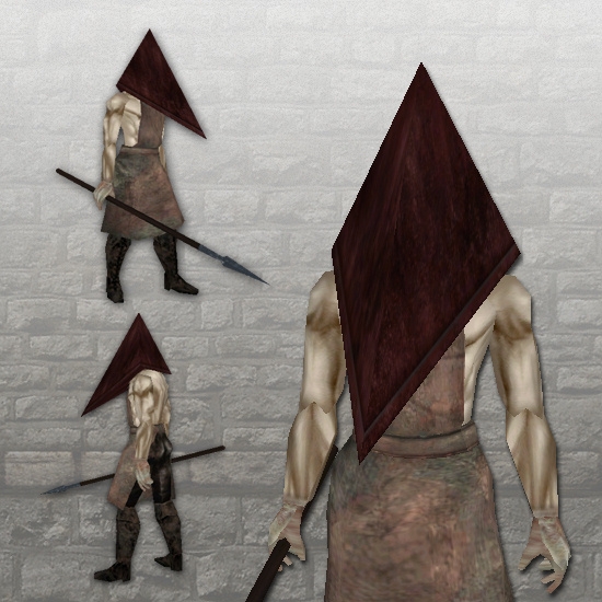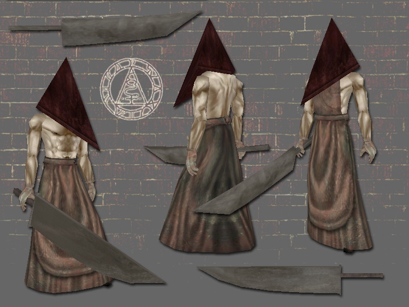 Pyramid Head models use standard animations, so some clipping may occur with the head.