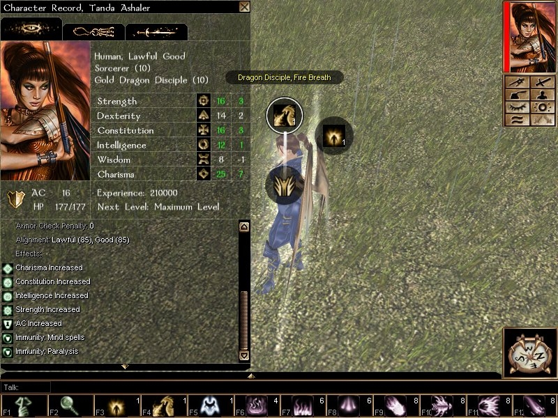 A few changes had to be made to the class as it was not possible to do everything Bioware plans to implement. To select Dragon Disciple, you must be either Human, Elf or Half-Elf, and you must be able to cast Arcane Spells. I could not implement the size increase at level 5, the extra spells of any level, or the changing hit dies with levels. So this Dragon Disciple has a Max of 80 hit points instead of 84. To compensate for these short falls, I have given the Dragon Disciple an Aura of Fear at level 9 when they get their wings. NOTE: Wings have no animation and are based of Aaon Graywolf and Ceros Winged PCs For DMs with Racial Bonuses HAK. The wings replace the Red Flag from Capture the flag as this is the only way that they will display correctly. I am not a modeller so I couldn't fix this.