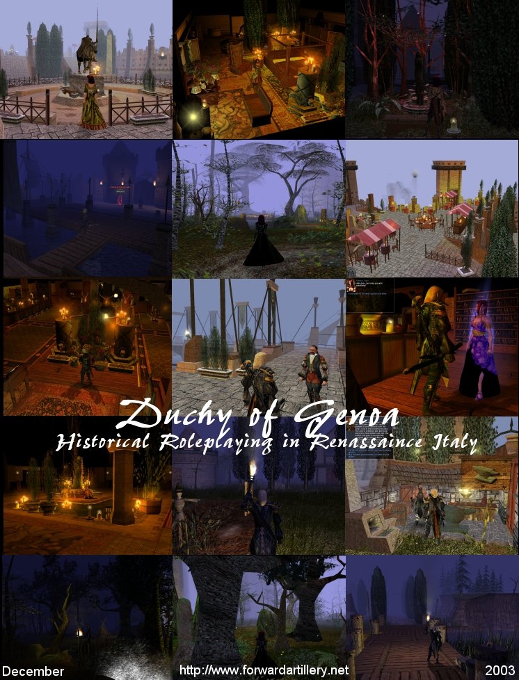This file is intended to function as a �read me� for information regarding the �hak� files necessary to play on the server, The Duch of Genoa. The server is located under the Roleplaying Tab as a Server vault listing. Entitled Duchy of Genoa followed by a version number (such as V122 etc) The server�s launch date is anticipated to be December 1, 2003.