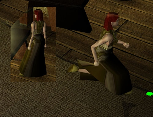 B). If you get around this by attaching the skin to a racial skeleton (this was feasible for wings, but wouldn't make much sense for a dress), it winds up ruining the model's environment mapping (ie. armour shinniness) by making it ghostly transparent.