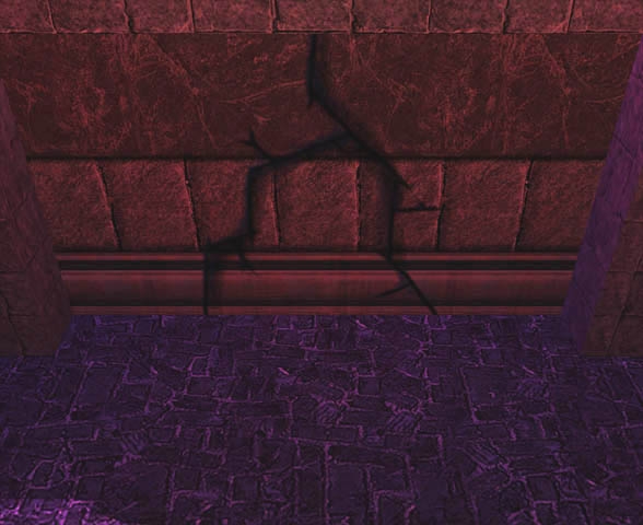 I made this for the Eye of the Beholder II project ( http://eotb2.no-ip.com ). The purpose of this simple model is to show how to change the appearence of a wall, without using a tileset, or an advanced model. When placing this placeable in front of a wall, it will look like there is a 'crack' in the wall. The idea is to make the 'crack' placeable attackable. When it is destroyed, script it to create Crack2 in the same spot. Crack2 is an 'opening' that will bring a character to the other side when clicked. This will look like someone bashing down the wall to get to the other side. You can repaint the texture to create other large wall features, like a painting, or a curtain. Only your imagination and photoshop skill will limit you. This model will not replace any existing models from bioware.