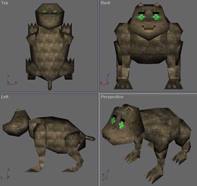 This model started as the c_boar.mdl imported into GMax 1.2 with NWMax 0.6. The texture I'm using for now also started as c_boar.tga, tho I plan to eventually get a better one made.