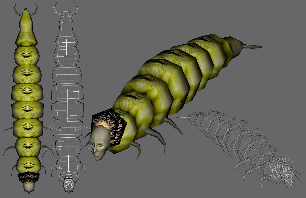 This is a Larva model and texture I did a few months back based after the creatures from the Planescape setting, it has been waiting for me to upload. Anyone who is interested in doing the custom animations for this is welcomed to, all I would like is model and texture credit. Hope to see these guys in game. File is actually a gmax file, all geometry has been transformed/scaled/reset xformed and texture is already 256x256 and in tga format. minor work needs to be done for the alpha map dealy but it shouldnt be too hard as it is pixelated enough to just highlight the black and save to alpha channel.