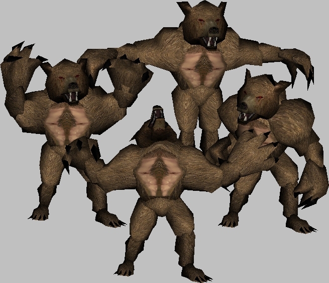 I updated the werebear model to look more like the DiabloII werebear. Also included multiple sizes and colors. You can now choose from a brown, black, or polar bear form.