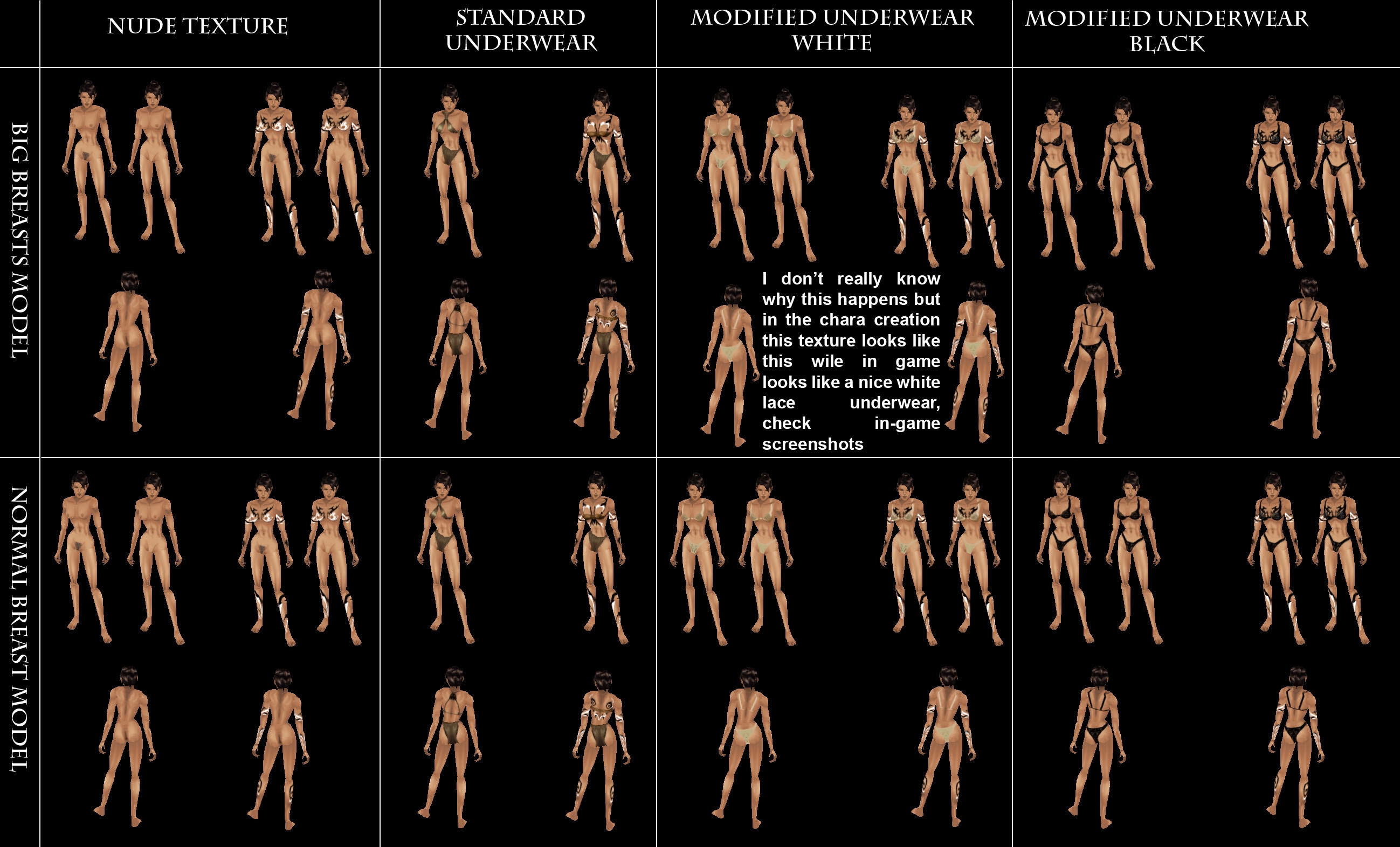 -Added 2 new underwear textures (they are identical, but one is white and the other one is black), those texture are 512x512 instead of the usual 256x256 in order to keep visible underwear details.