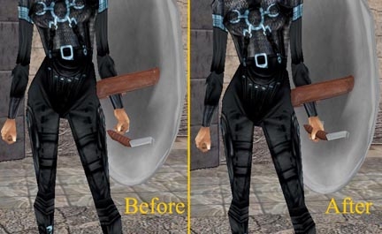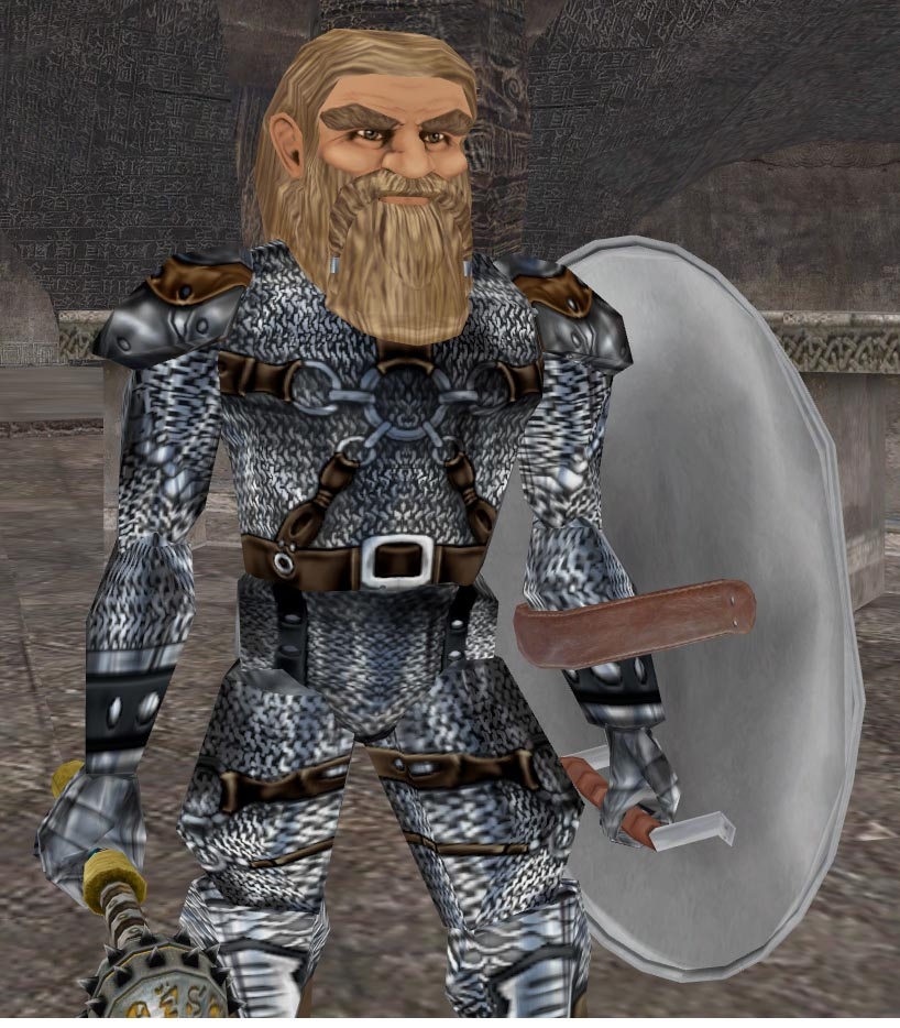 This shield was made as an Artifact for a dwarf only. It�s made to only fit in a male�s hand, but can be adjusted to fit a female. The scaling makes it look too big on other races. As an Artifact; it is made from a laminate of two rare metals, hammered thin by a master dwarf shield smith. (I lost my notes on the metals; Mithril on the inside and a rare anti-magic metal laminated on the outside. I no longer remember the metal name.)