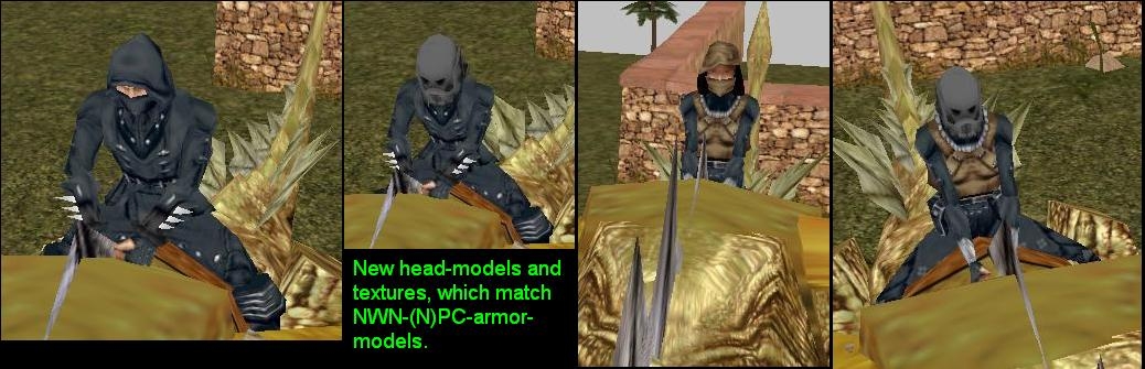 There are no masked headmodels for humans. So I took them from (N)PCs (c_ynpc_h_m04 and pfh0_012 with a rescaled & remodeled mask from c_ynpc_h_m04) to make heads matching the drigonrider-heads.