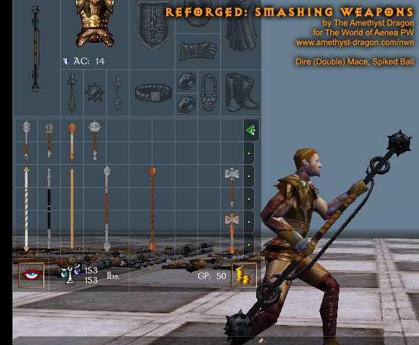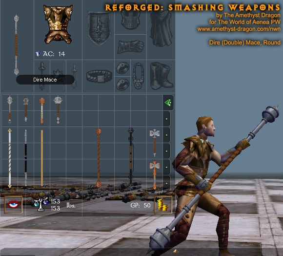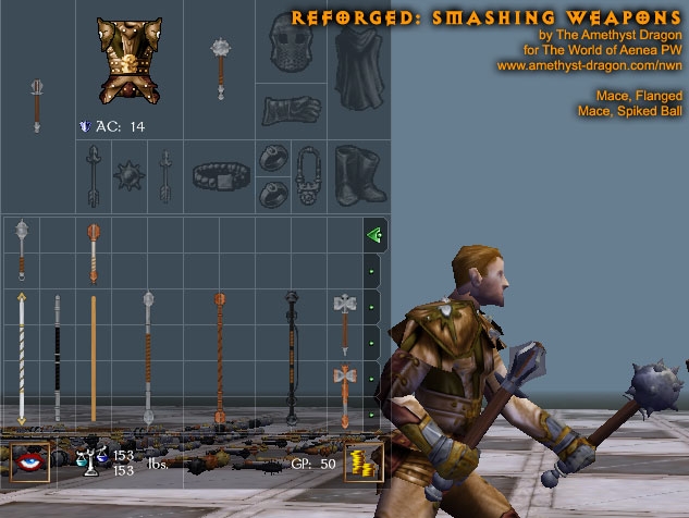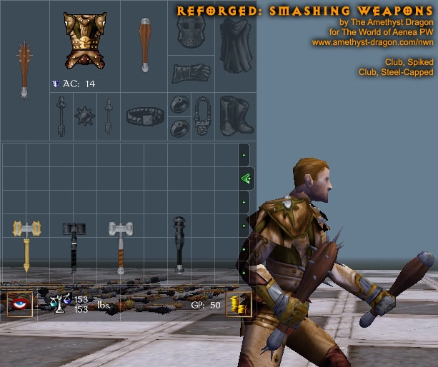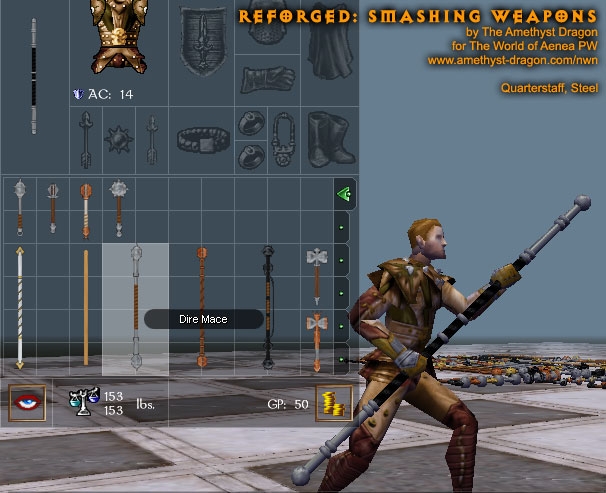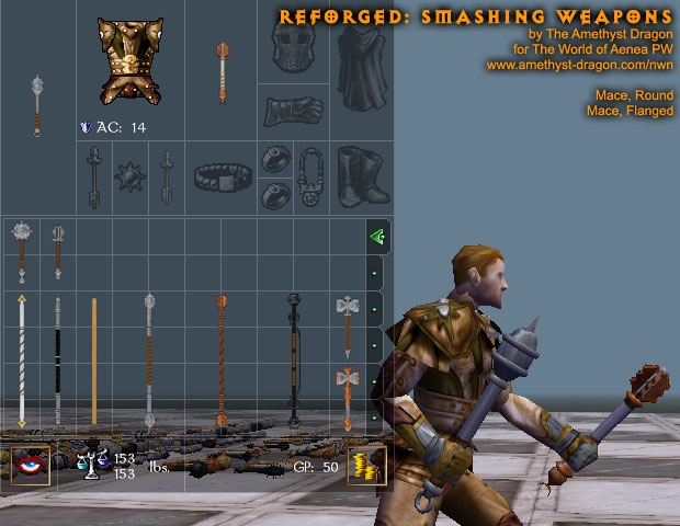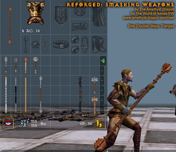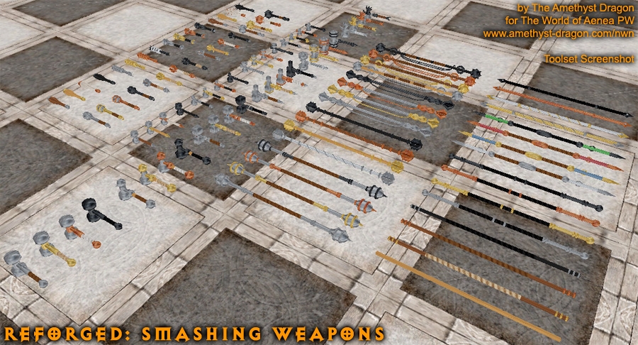 This simple package contains completely remade models and all-new textures for clubs, light hammers, warhammers, maces, dire maces, and quarterstaves. There are two options when using this upgrade: hak or override.
