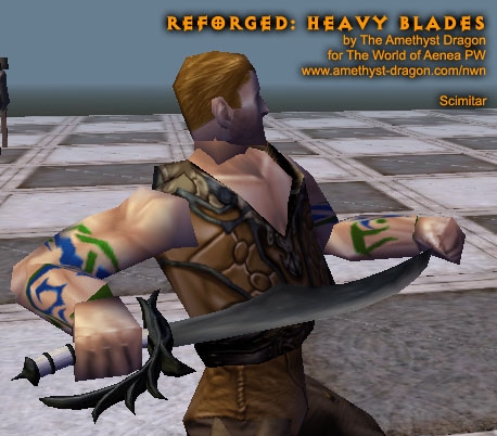 This simple package contains completely remade models and all-new textures for scimitars, katanas, longswords, bastard swords, greatswords, and two-bladed swords. There are two options when using this upgrade: hak or override.