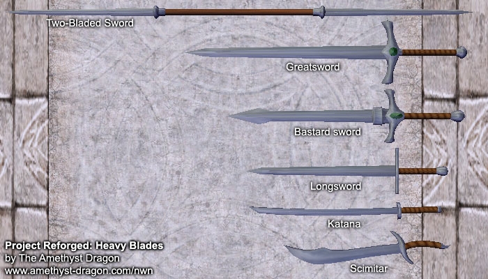 a remake for scimitars, katanas, longswords, bastard swords, greatswords, and two-bladed swords