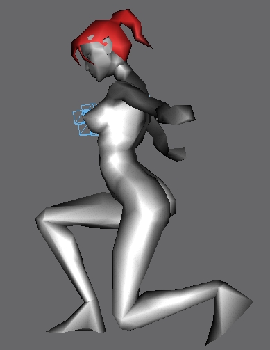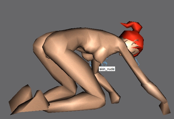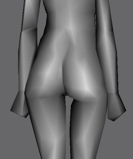This frame shows the curvature of the region between the torso and the pelvis. The final release will have less skin nodes, but it looks really good on both male and female skins right now. In game, good muscle definition can be seen in this region with minimal addition of polygons.