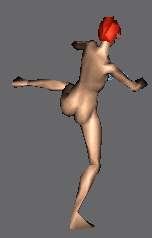 Shows the built in squishing effect caused by new nodes in the biceps. These nodes tell the chest base nodes when and how much to flex inward. Pardon the nips. Not many frames in the animation actually use this effect, but it certain makes for a more realistic human body.