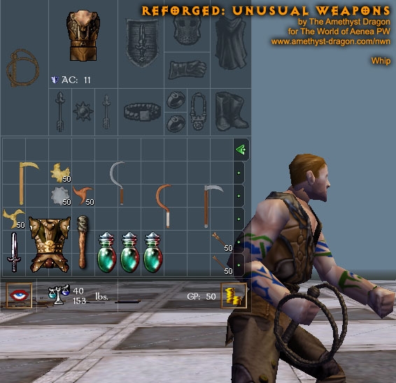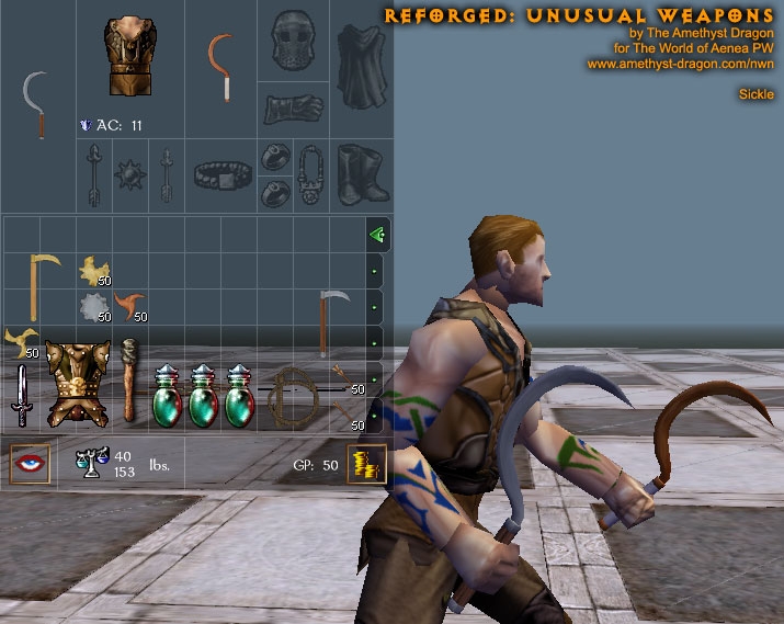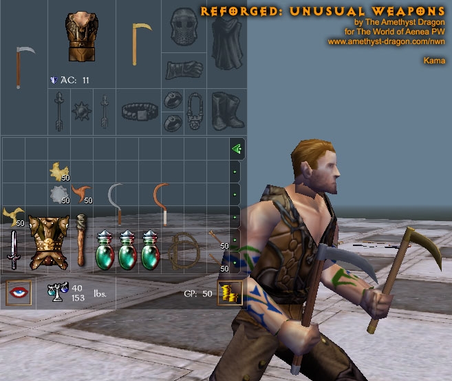 Thezibaim: I don't plan on reforging the magical staves yet. I've always seen them more as magical items than weapons. And my PW's players wouldn't see them if they were reforged, as a couple years ago I replaced all of the old staff models with a "magic staff overhaul" (sample screenshots are here on the Vault).