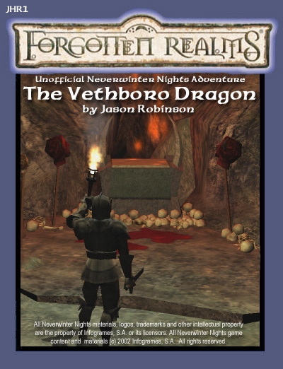 Version 1.19 (10/10/03)It is hard to believe that only a month ago you decided to leave your home and take on a life of adventure. Unfortunately, after weeks of uneventful, unexciting, and unproductive days, you find yourself near Vethboro, a recently-founded village on the eastern side of the Thunder Peaks. Your desire to make a name for yourself is now quite high, but the chances of finding a quest more perilous than sheep herding--especially in a village this small--seem quite low...This is a light-hearted adventure intended for new characters. It includes some great community-created content, extensive dialogue, a bit of intrigue, and more than you ever wanted to know about the culinary practices of goblins.The module is designed to accommodate DMs of various skill levels. Documentation, maps, and a pre-created DM character are included to assist play.See the readme link (or the included documentation) for important additional information.
