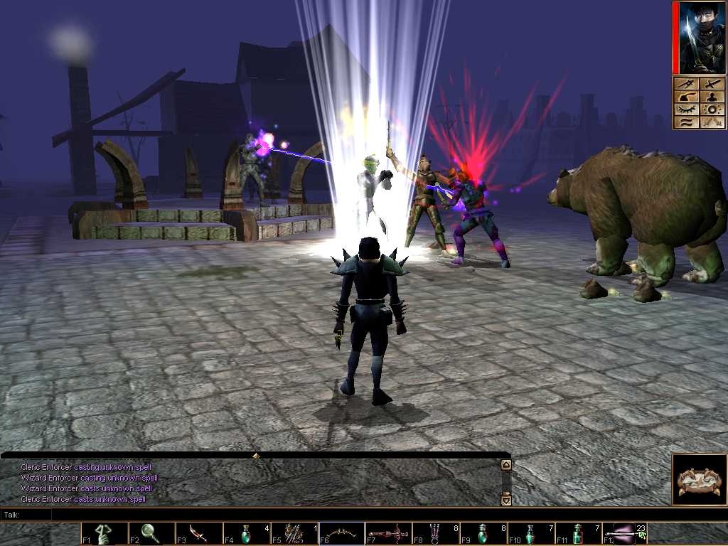 The year is 1294. You have recently gotten a letter from your old friend James Blackwood. The letter expresses despair and urges you to travel to Corus without stating the exact nature of the request. You know your friend well and sence that something is very wrong indeed. You leave your home the same day and travel quickly and far in short time. You soon see the familiar horizon of the coastal area near Corus, but surprisingly, you also observe an increasing activity in military presence. You hurry further towards the outskirts of the city, soon it is night and in your hurry you get a little lost while still being able to easily locate the Poor Sector where James should be waiting in the Kicking Donkey inn according to his letter. But the night creeps upon you, and shelter must soon be found since the Poor Sector isn't a very safe place for lone wanderers. A shadow moves around a corner...