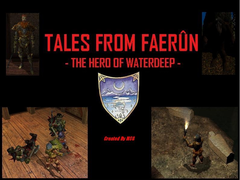 This is the first chapter in the Hero of Waterdeep epic story. The storeys first chapter takes place near the great city of Waterdeep where you got involved in a plot that will change you calm life forever. The bad news is that the module is really large since I included all the Hakpacks, Module and Movie in the same file so but you won�t have to download a huge file like this for every chapter just this first time. I hope that everybody that downloads this module will enjoy playing it as much as I enjoyed creating it. After 12 month of planing, scripting and hard work I am proud to give you the first chapter in the Hero of Waterdeep epic story. MSG