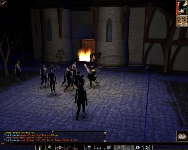 This time around I took my necromancer (Cleric) to do this module. The forest was OK although a bit tedious to get the transition to trigger. The courtyard OK as well. The ground floor was quite tedious due to a lot of repeated fights (less so in the cellar). Later on the henchman turned hostile (clever script) and followed me in the Chapel taking away any chance of getting some rest. Would have been OK if I was not forced to retreat from the first floor (I can handle one vampire but no three at a time) and once back in the Chapel I was unable to lure the foe someplace else (e.g. barn) and had no other choice but to try to defeat him. The fight did not go well (as I expected) and then one little boy turned hostile...