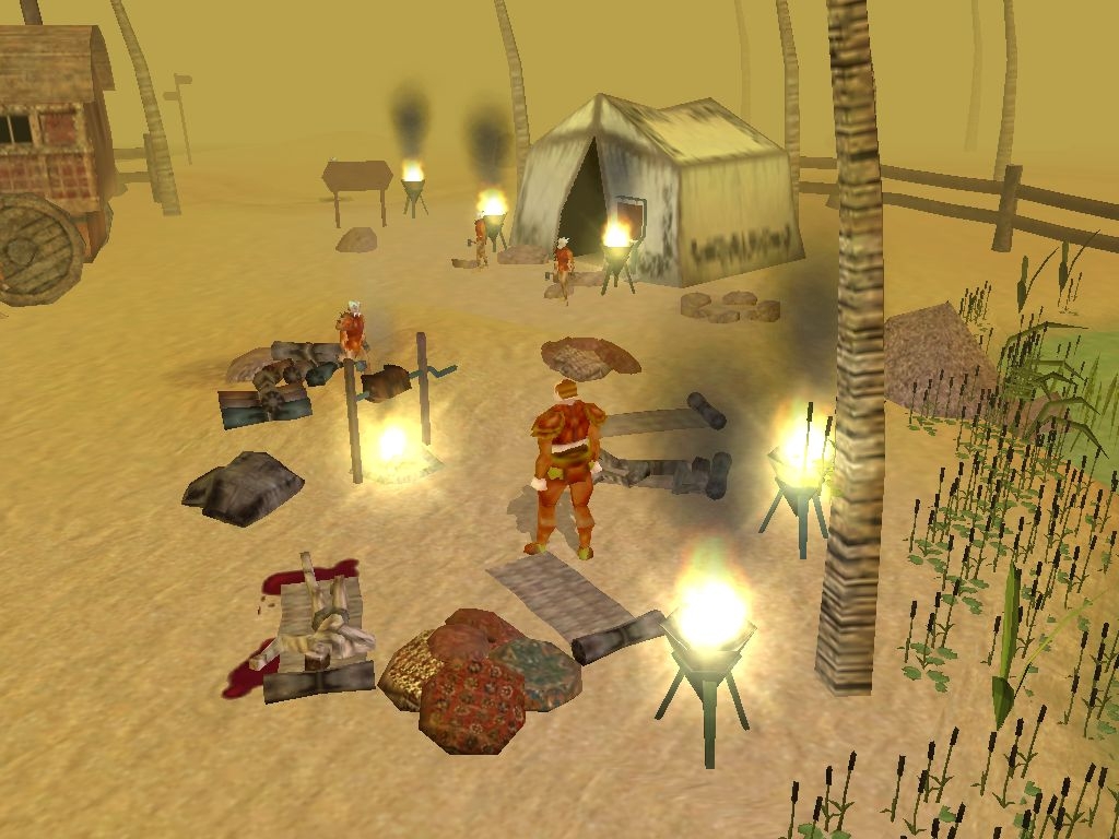 'L'Etranger apr�s avoir emp�ch� Moebus de recourir au livre maudit, est rentr� au village oubli� triomphant. La paix semblait �tre gagn�e et le calme revenu sur le royaume d'Ehb. L'Etranger se maria et eu un enfant. Vous �tes cet enfant. Vous vivez une enfance heureuse. Mais le mal ne fut pas vaincu. Le livre perdu dans la bataille final devait � nouveau r�veiller la col�re des dieux. La guerre entre les orcs et les hommes qui avait �t� �vit�e jadis repris de plus belle, les Hommes durent se replier vers le nord apr�s la chute du ch�teau du duc Aphagos. Vous fait partie d'un des convois qui part vers le nord pour rejoindre les monts �ternels. Mais vous �tes attaqu�s dans le d�sert... Vous vous r�veillez agar dans l'Oasis des Vents. Vous �tes semble t il le seul survivant...' mise � jour v1.5