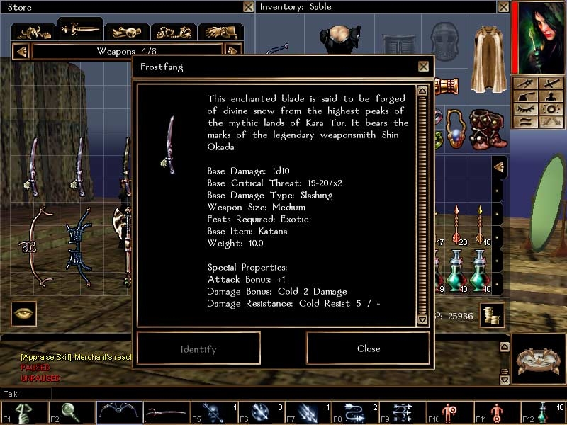 • Purchase equipment from a wide selection of items, including standard NWN items and many unique creations. (The CEP2 version also includes a separate CEP merchant.)